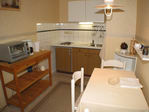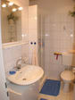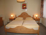 Sie betreten Ihre Wohnung über eine kleine Treppe durch einen separaten Eingang mit Windfang. Vom Flur mit Gaderobe und Spiegel kommen Sie rechts ins Schlafzimmer mit Doppelbett (verstellbarer Lattenrost), Nachtschränkchen, Kleiderschrank, einem Sideboard, zwei Stühlen, Teppichboden und einem Fenster nach Süden. Gegenüber liegt die kleine Küche, die u.a. mit einem 2-Platten-Herd, einer Anrichte mit Umluftbackofen, Kaffeemaschine, Wasserkocher, Toaster und einem Esstisch mit drei Stühlen ausgestattet ist. Daran grenzt das helle, freundliche Wohnzimmer - hier finden Sie eine Eckcouch mit Tisch, ein Bücherregal mit TV-Gerät und Teppichboden - von hier aus kommen Sie auf den gemütlichen Süd-Balkon mit Sitzmöbeln und Blick über den Janusplatz. Das Badezimmer ist komplett weiß gefliest und bietet Ihnen Dusche/WC, einen Fön und einen Abzug anstelle eines Fensters. Haus Frisia: bestens geeignet zum 'rundum Wohlfühlen'. Handtücher, Bett- und Tischwäsche werden Ihnen vom Vermieter gestellt. Größe der Ferienwohnung: ca. 44 qm.